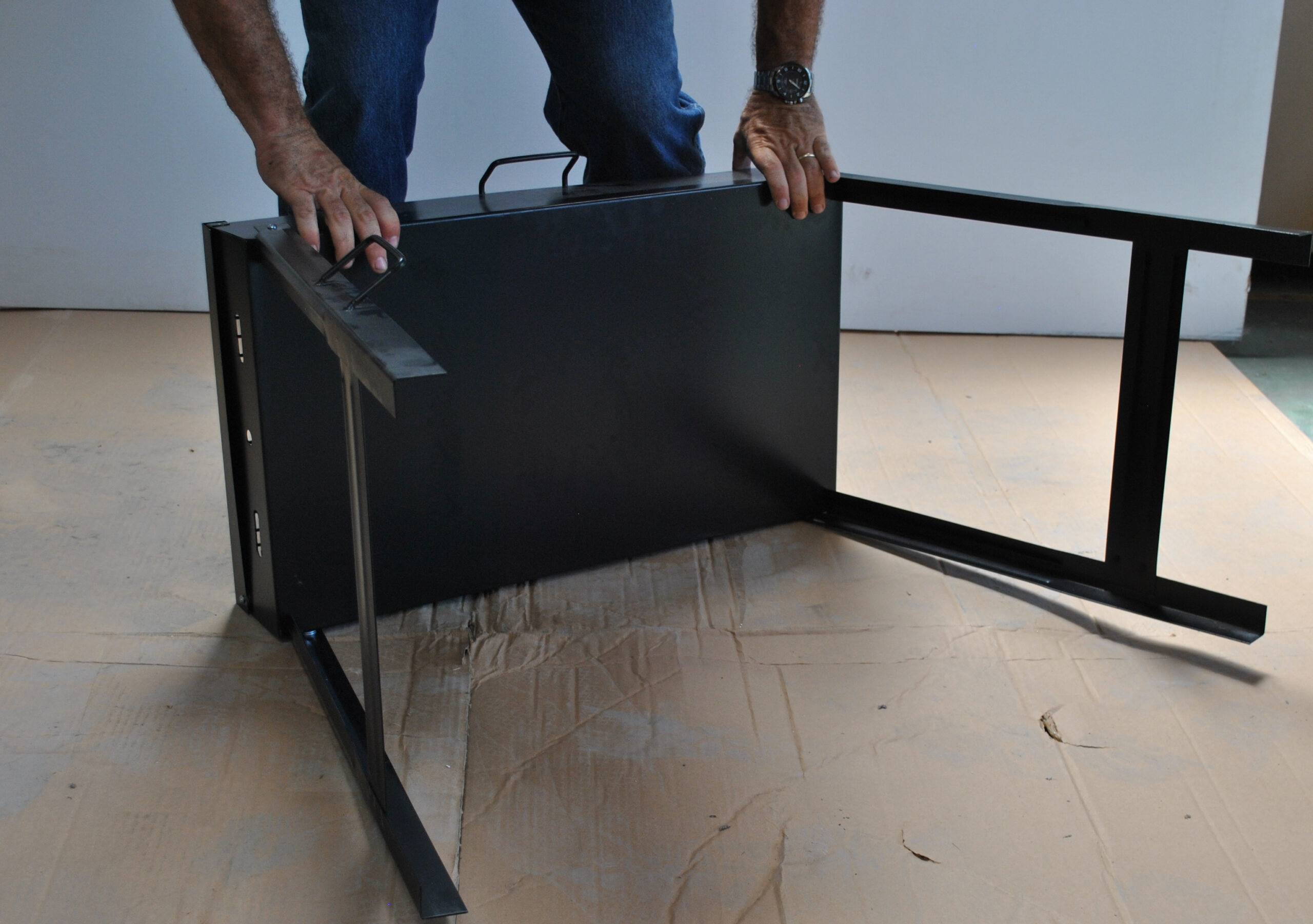 - Electrostatic black paint and cure in oven for longer duration.